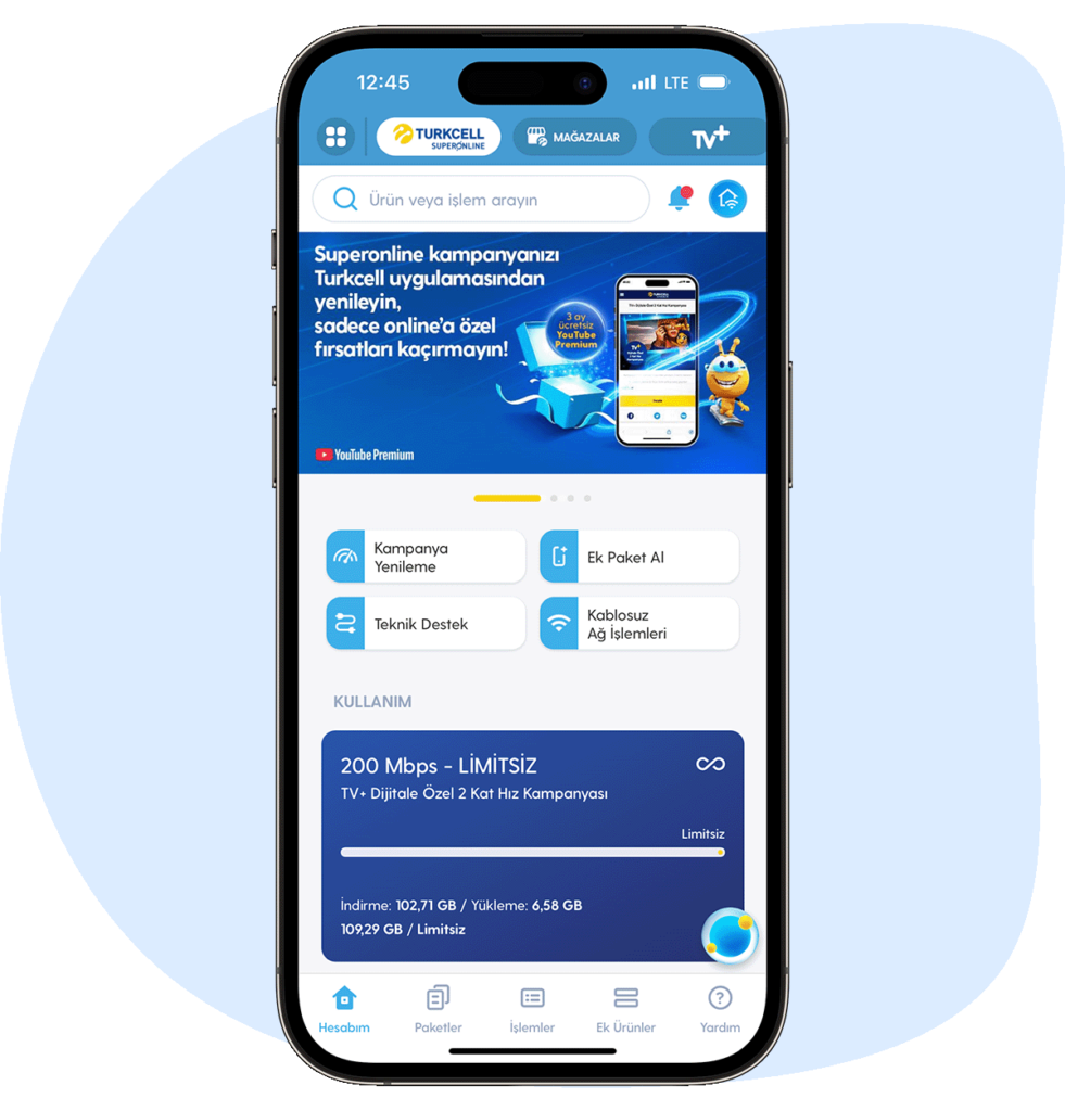 Turkcell Superonline işlemlerinizi çağrı merkezini aramadan en hızlı ve kolay şekilde Turkcell Uygulaması üzerinden yapabilir, size özel indirim fırsatlarını yakalayabilirsiniz.